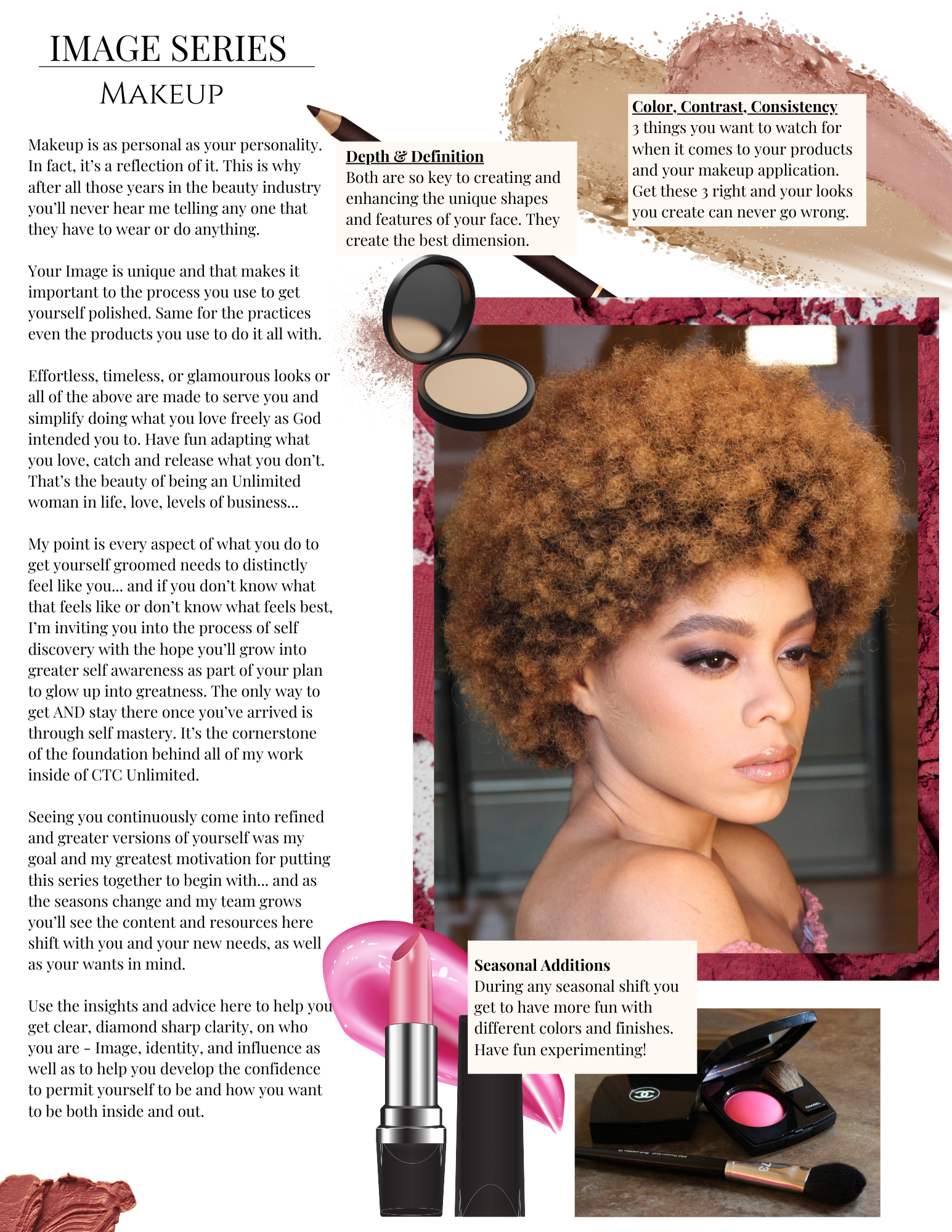 Now when you’re on camera though, things have to be elevated so it translates well polished. You need great coverage, complimentary colors, and dimension for your face, form, and features. Here you’ll find the basics, inside the Image, Identity, and Influence community, we go beyond basics so you shine brilliantly. There you’ll learn to show up, shine, and glow up.